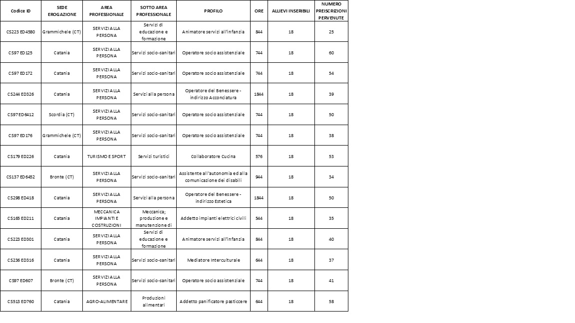 - alla data del 03/07/2018 sono state “confermate” tramite Pec dal Dipartimento dell’Istruzione e della Formazione Professionale le riserve finanziarie di 14 percorsi formativi (indicati nella tabella sottostante);