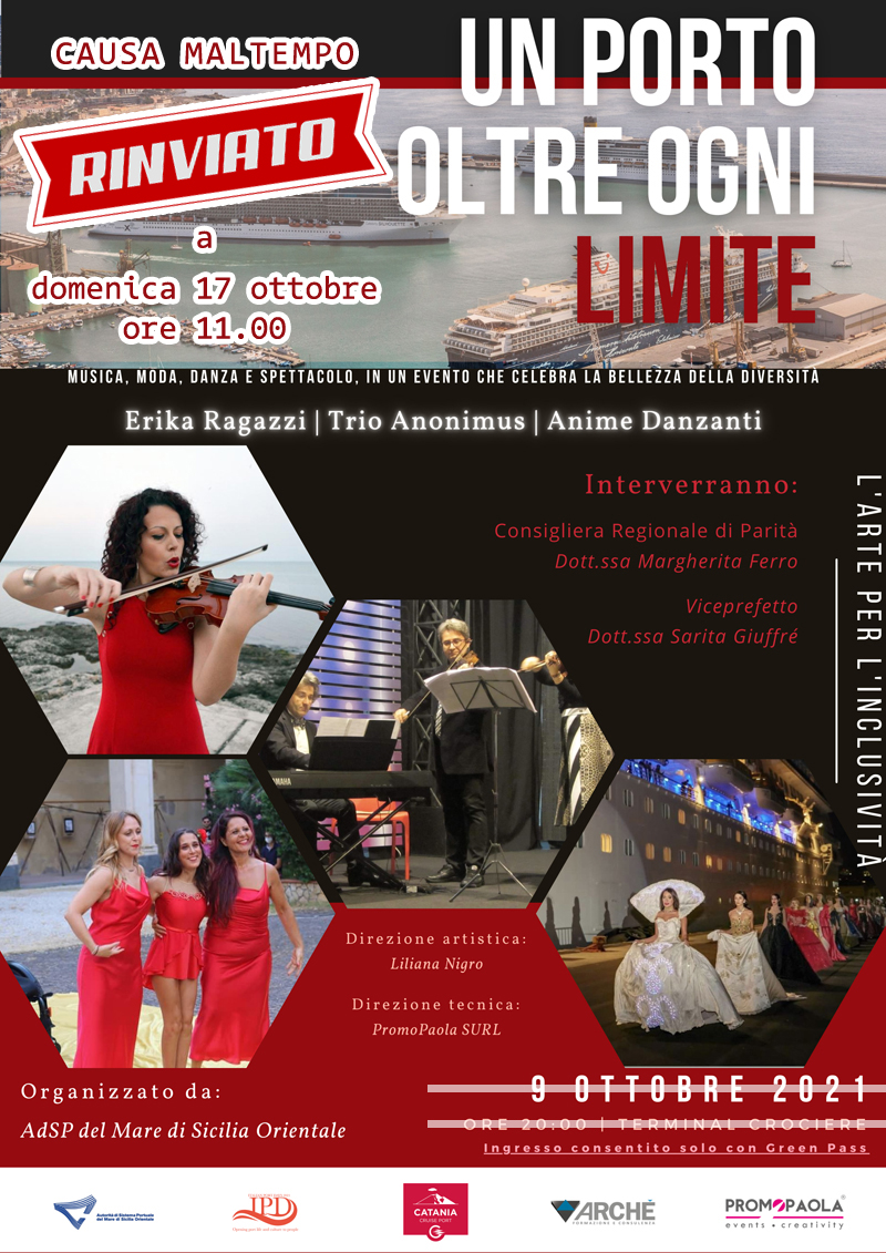 La manifestazione "UN PORTO OLTRE OGNI LIMITE", originariamente prevista per sabato 9 ottobre e rinviata a causa di condizioni meteo avverse, è stata riprogrammata per domenica 17 ottobre alle ore 11.00.