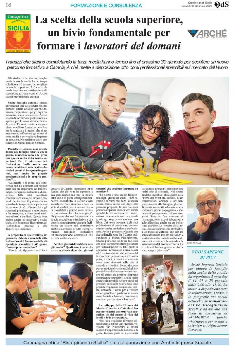 Sul Quotidiano di Sicilia di oggi si parla di noi e della scuola superiore come bivio fondamentale per formare i lavoratori di domani!